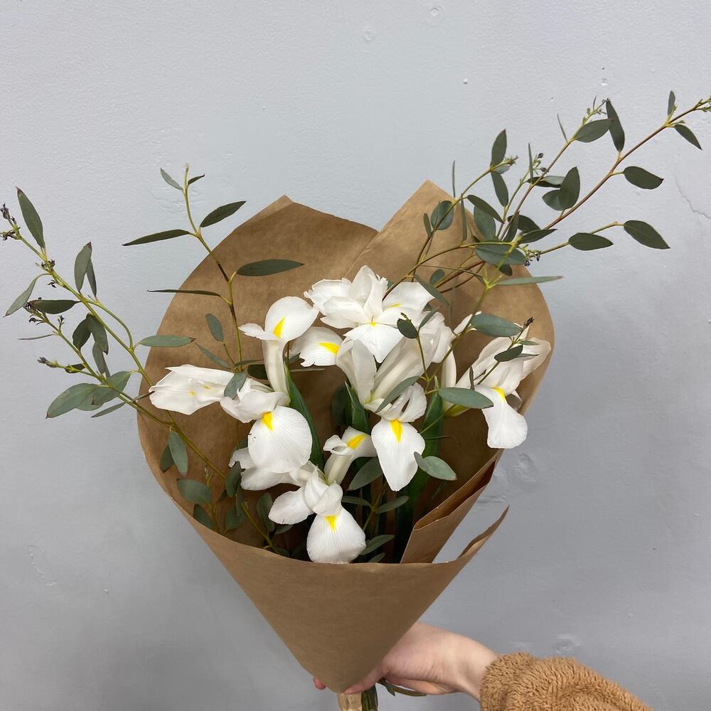 Ирис – 5 шт.Эвкалипт – 2 шт.Упаковка крафт – 1 шт.